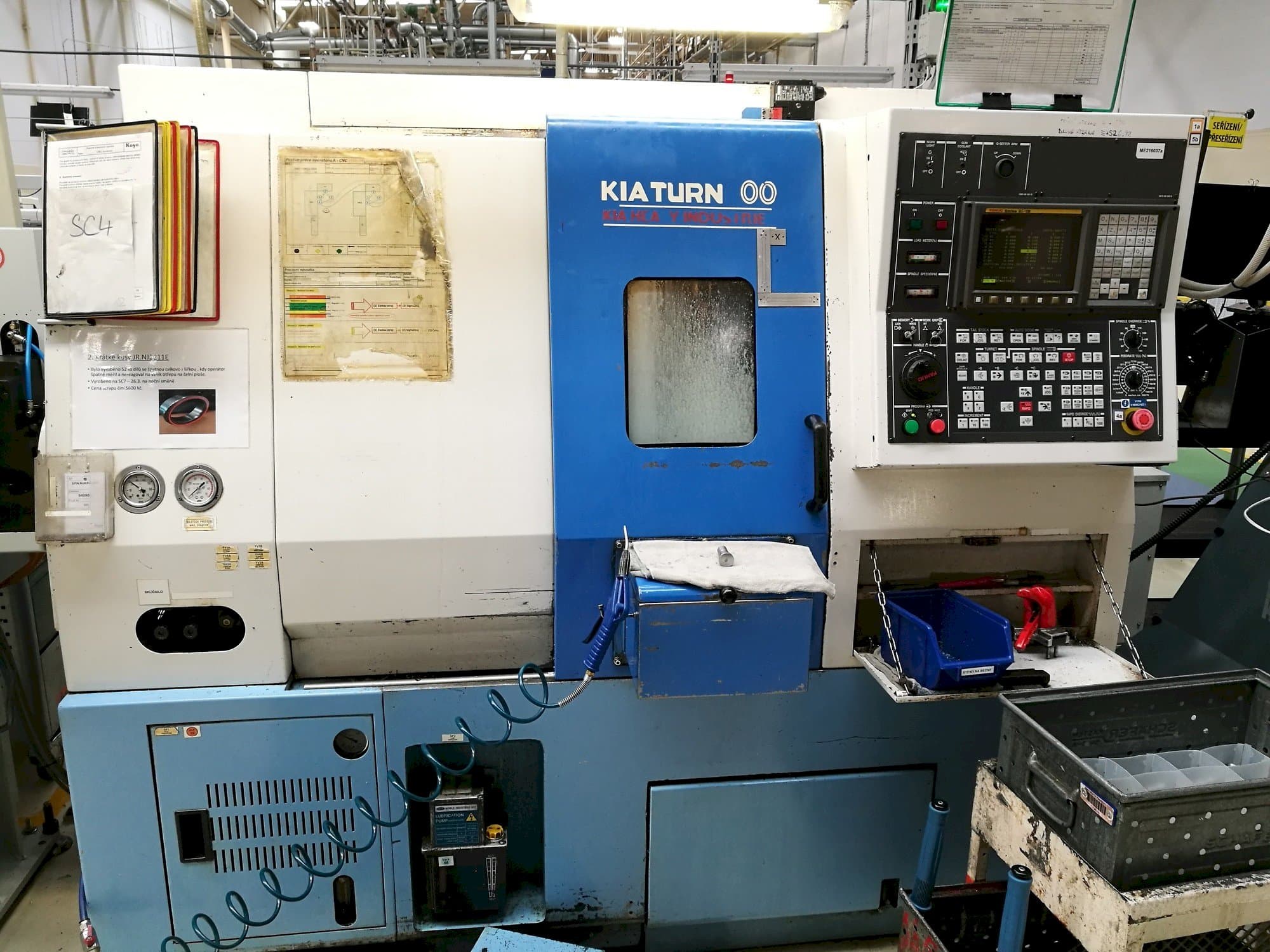 Этот токарный станок Kia Super Kia Turn 200 был построен в 2005 году в Южной Корее. Он проработал 77617 часов (18764 часов работы шпинделя). Он оснащен блоком управления Fanuc серии Oi-TB. Этот станок может работать с частотой вращения шпинделя до 4000 об/мин. Он включает в себя транспортер стружки и держатели инструмента.